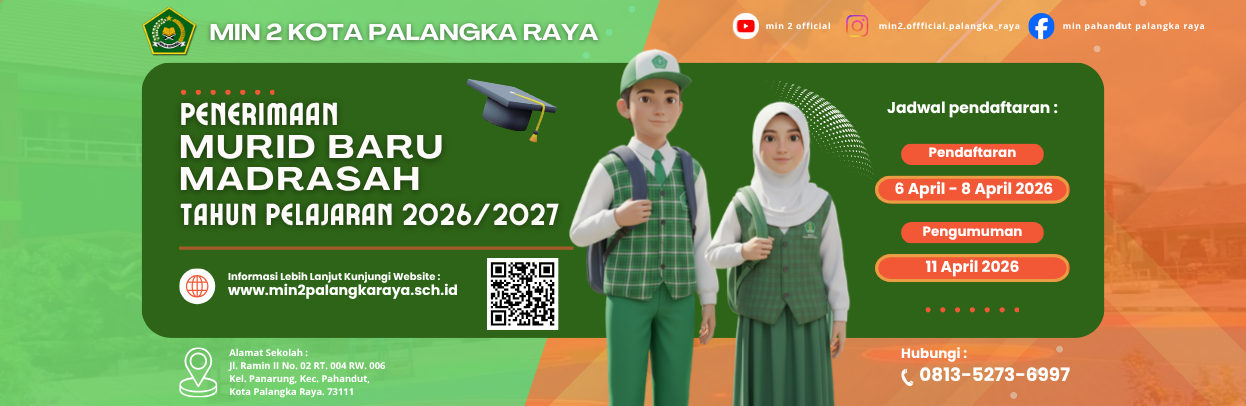 Kami selaku pimpinan MIN 2 Kota Palangka Raya mengucapkan terima kasih kepada tim pembuat Website ini yang telah berusaha untuk dapat lebih memperkenalkan segala perihal yang dimiliki oleh MIN 2 Kota Palangka Raya. Dan tentunya Website madrasah kami masih terdapat banyak kekurangan, oleh karena itu kepada seluruh civitas akademika dan masyarakat umum dapat memberikan saran dan kritik yang membangun demi kemajuan Website ini lebih lanjut.
